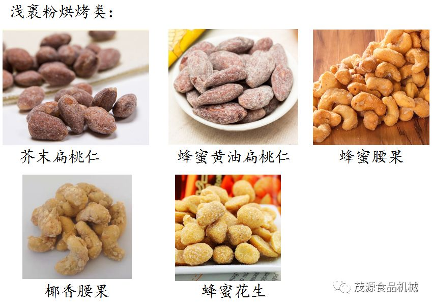 裹衣/裹粉類產品是近年來較為熱銷的產品之一。通過糖漿向物料表面沾粘面粉+糕粉+變性淀粉+其他特色配料,來改變或賦予原有堅果/籽類所不具備的形狀/風味。